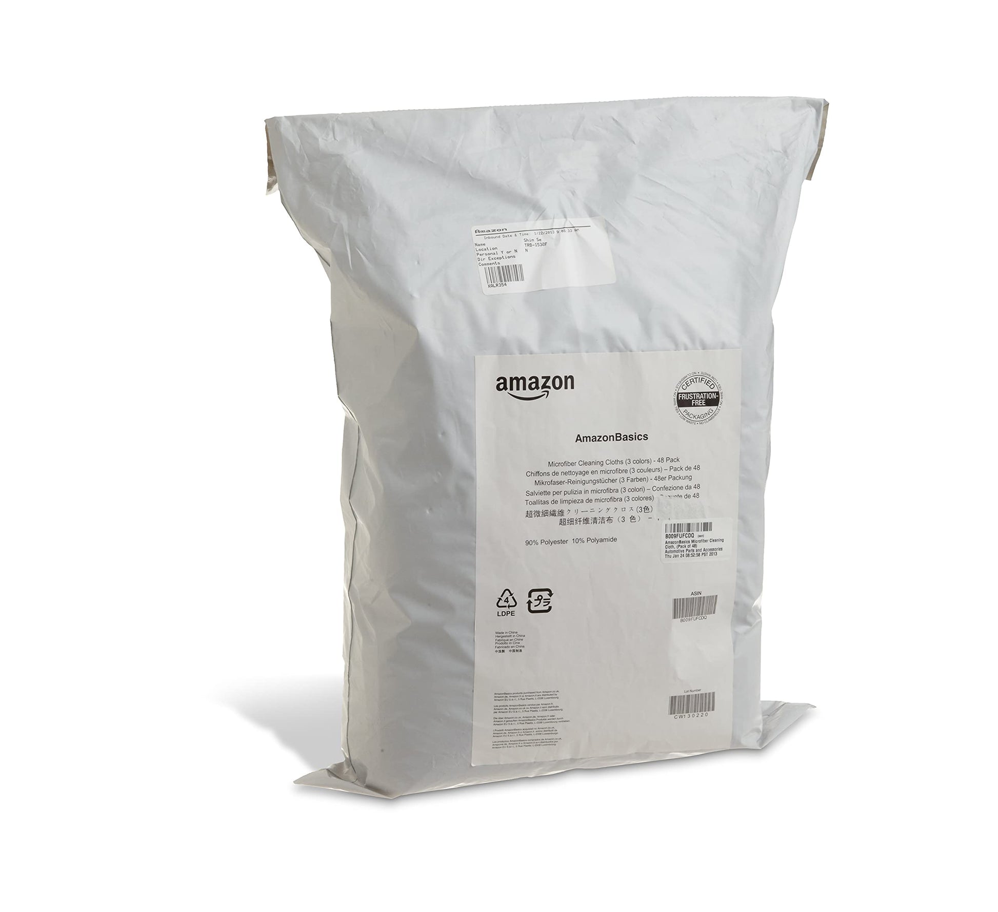 Amazon Basics Microfiber Cleaning Cloths, Thin, Car Wash Wipes, 24 Pack, Blue, White, Yellow, 15.7 x 11.8 inches (40 x 30 cm)
