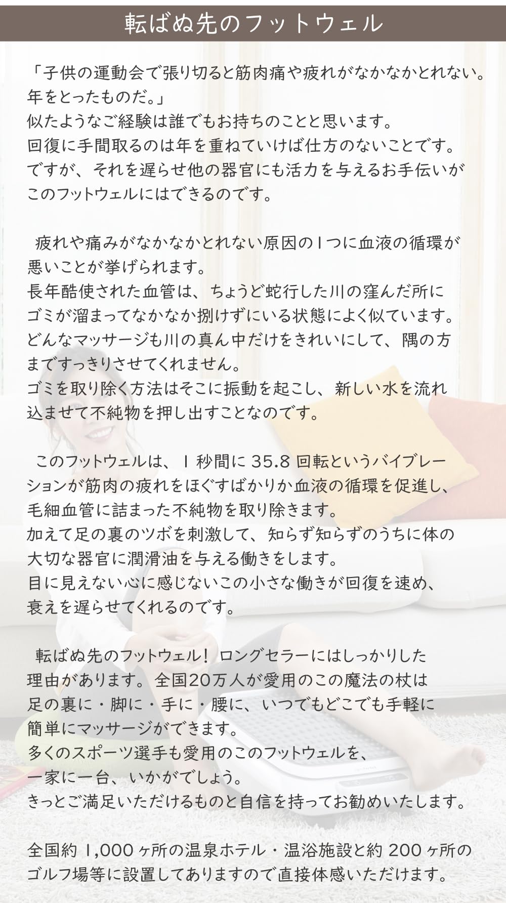 - Vibrating massage improves blood circulation throughout the entire foot and heals your entire body after long walks, work or sports