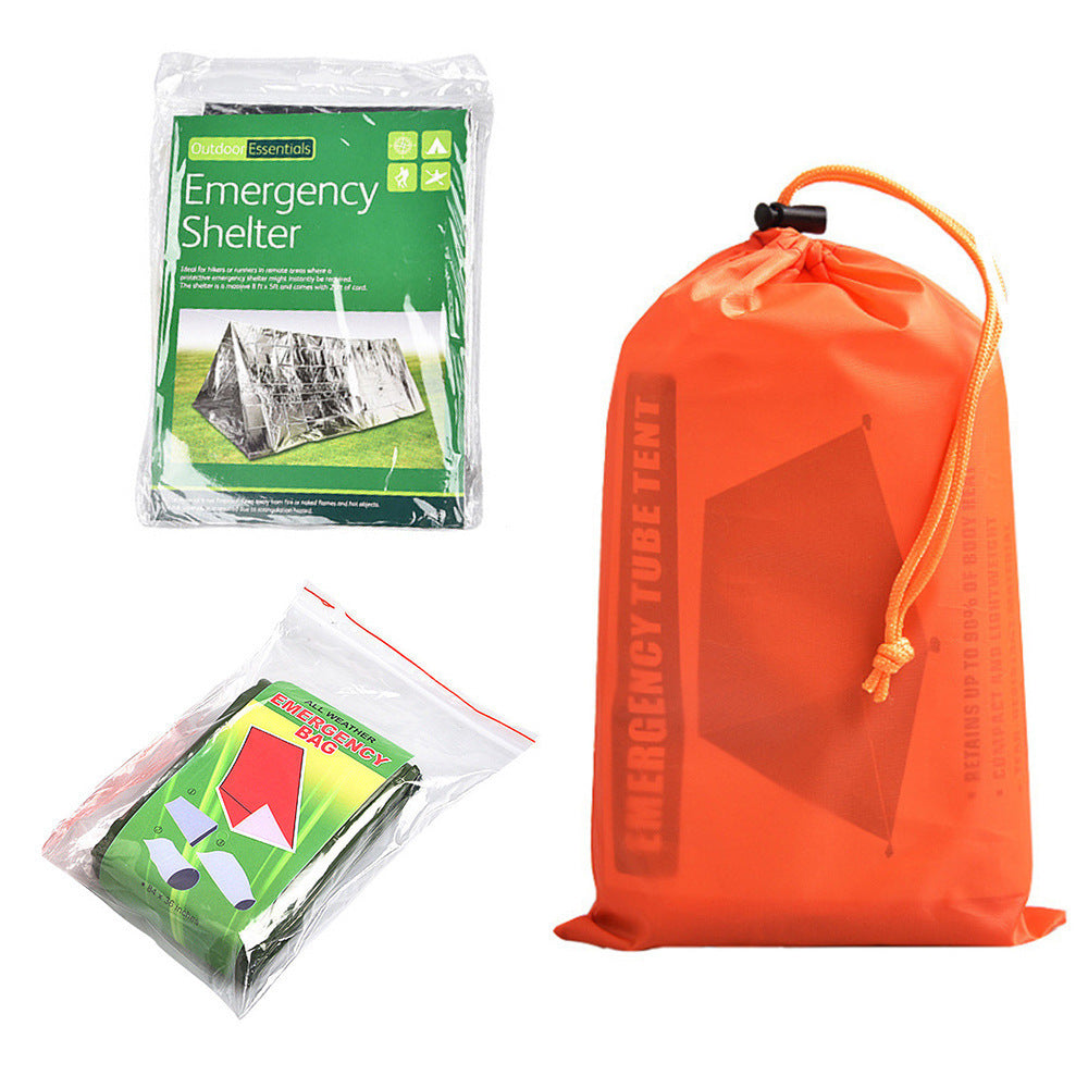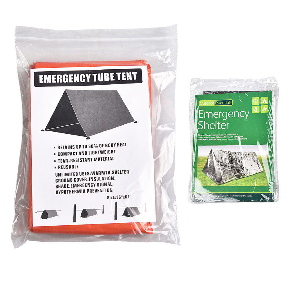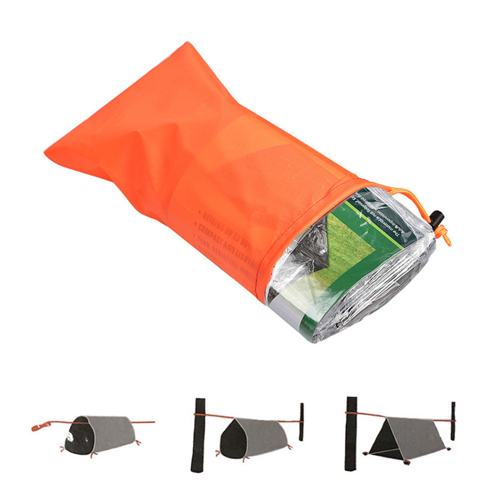 アウトドア用シングルレイヤーテント & 緊急保温ブランケット 登山・災害対策・サバイバル用|アルミフィルム保温寝袋・エマージェンシーブランケット 自然でも災害時でも、命を守る“緊急保温ギア”。 軽量で携帯しやすいシングルレイヤーテントと、 体温を保持するアルミ保温ブランケット(寝袋タイプ)のセットです。 登山、キャンプ、地震防災、遭難対策に最適。