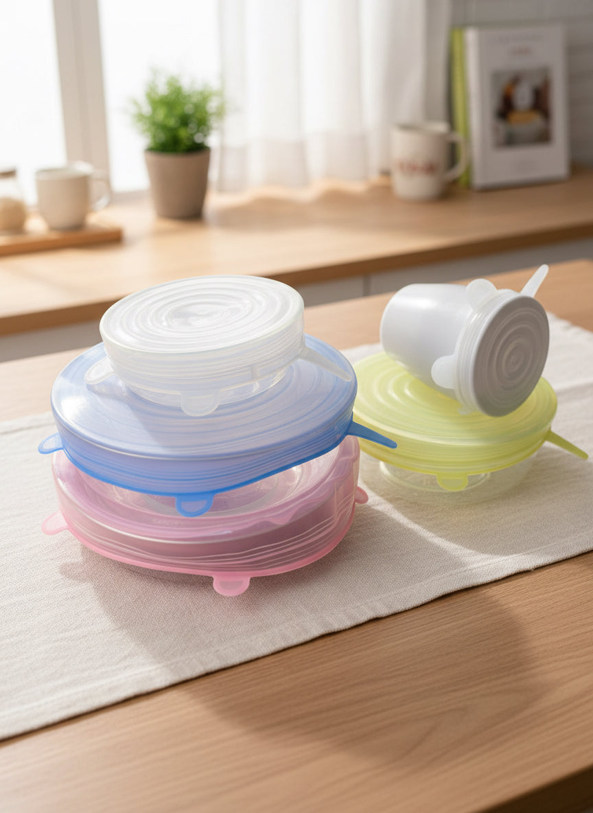 再利用可能なシリコン蓋セットで、食品をより長く新鮮に保ちます!